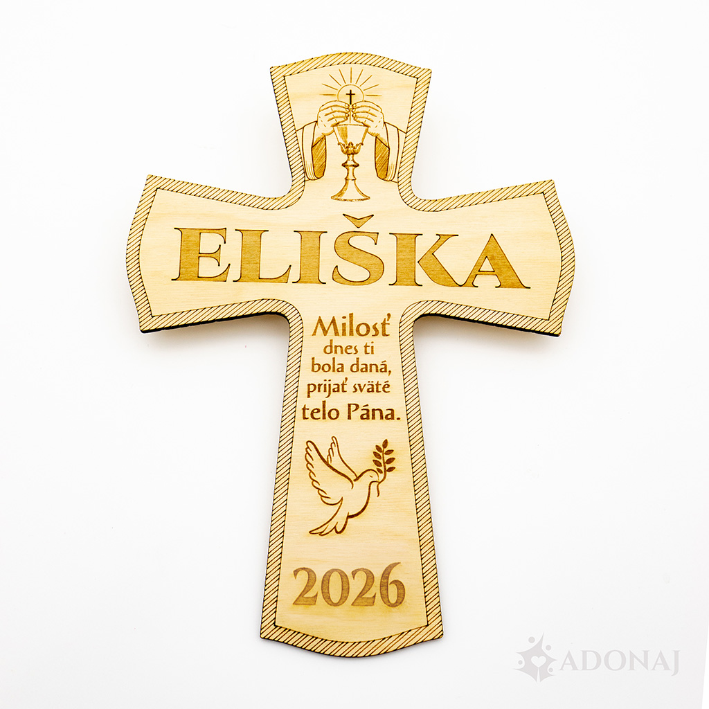 * drevený KRÍŽIK – S MENOM – 1. sväté prijímanie